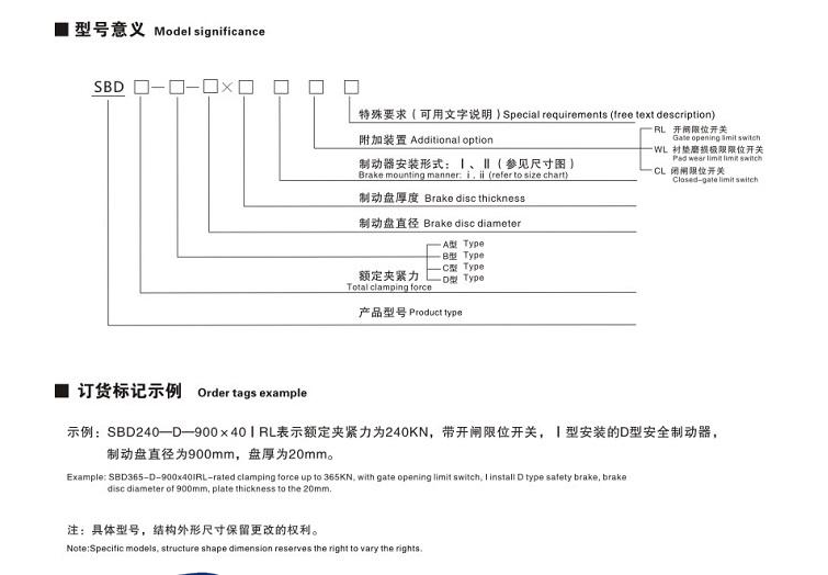 ■常閉式設計,安全可靠;特制碟簧施力制動,液壓驅動釋放(液壓站選型詳見液壓站樣本)。
