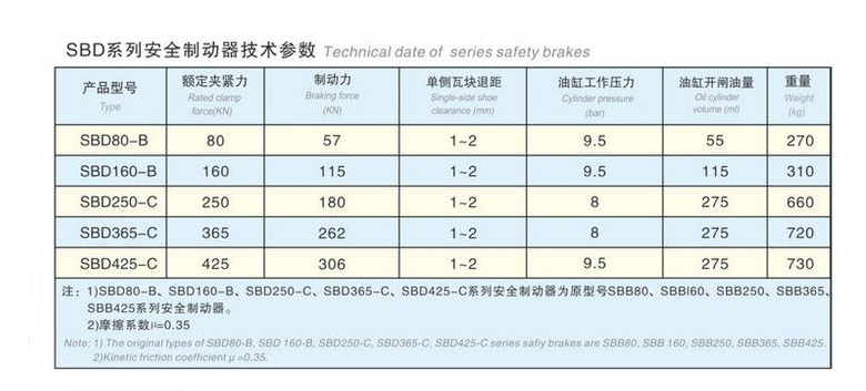 SB、SBD系列液壓安全(緊急)制動器,是一種使用在低速軸(卷筒軸)上的大功率制動裝置,可廣泛用于大中型起重機、港口裝卸機械起升及臂架俯仰機構低速軸的緊急安全制動。礦用卷揚機、提升機和大功率傾角式皮帶運輸機的工作制動和緊急安全制動,纜車和索纜起重機驅動機構的安全制動,鑄造起重機等特種起重機起升機構低速軸的安全(緊急)制動。