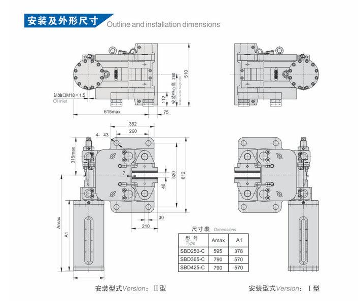 1、常閉式設計,安全可靠;特制碟簧施力制動,液壓驅動釋放;